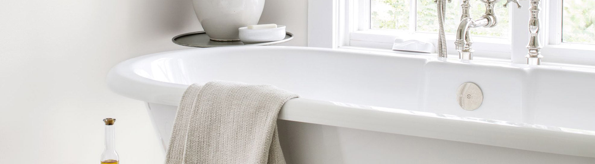 Une simple étagère en travers de la baignoire offre un perchoir idéal pour une fleur fraîche, une bougie parfumée, ou un verre de vin quand est venu le temps de se détendre.